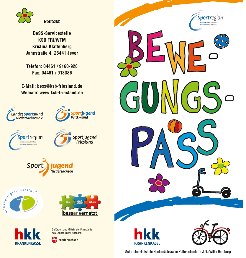 Die Kitas und Grundschulen der Landkreise Friesland und Wittmund melden die Kinder gebündelt als Klasse oder gesamte Einrichtung für den jeweiligen Aktionszeitraum an. Die BeSS-Servicestelle verteilt das Material vor Beginn des Aktionszeitraumes an die teilnehmenden Kitas und Grundschulen. Die Bewegungspässe bleiben bei der Kita/Schule.